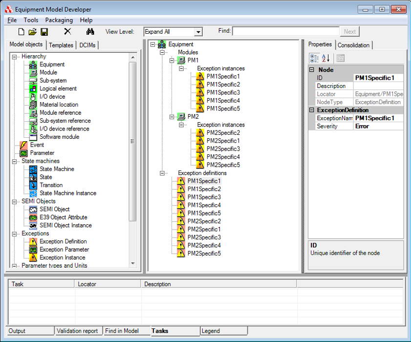 Cimetrix has extensive experience in helping application developers integrate the Equipment Data Acquisition (EDA) / Interface A standards into their equipment control applications. Occasionally we encounter an equipment type that has a very large number of process modules and each process module has a very large number of exceptions. An exception in EDA Freeze II is represented by both an exception definition and an exception instance. What are the options for creating a model with a large number of exceptions?