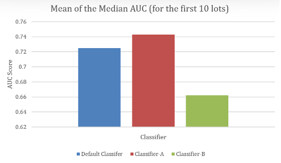 Under temporal validation conditions simulating limited dataset scenarios, the specialized sampling-based classifier achieved consistently superior performance. When trained on the first 10 lots, the algorithm demonstrated approximately 2 percentage points improvement in median AUC-ROC scores compared to the incumbent classifier.