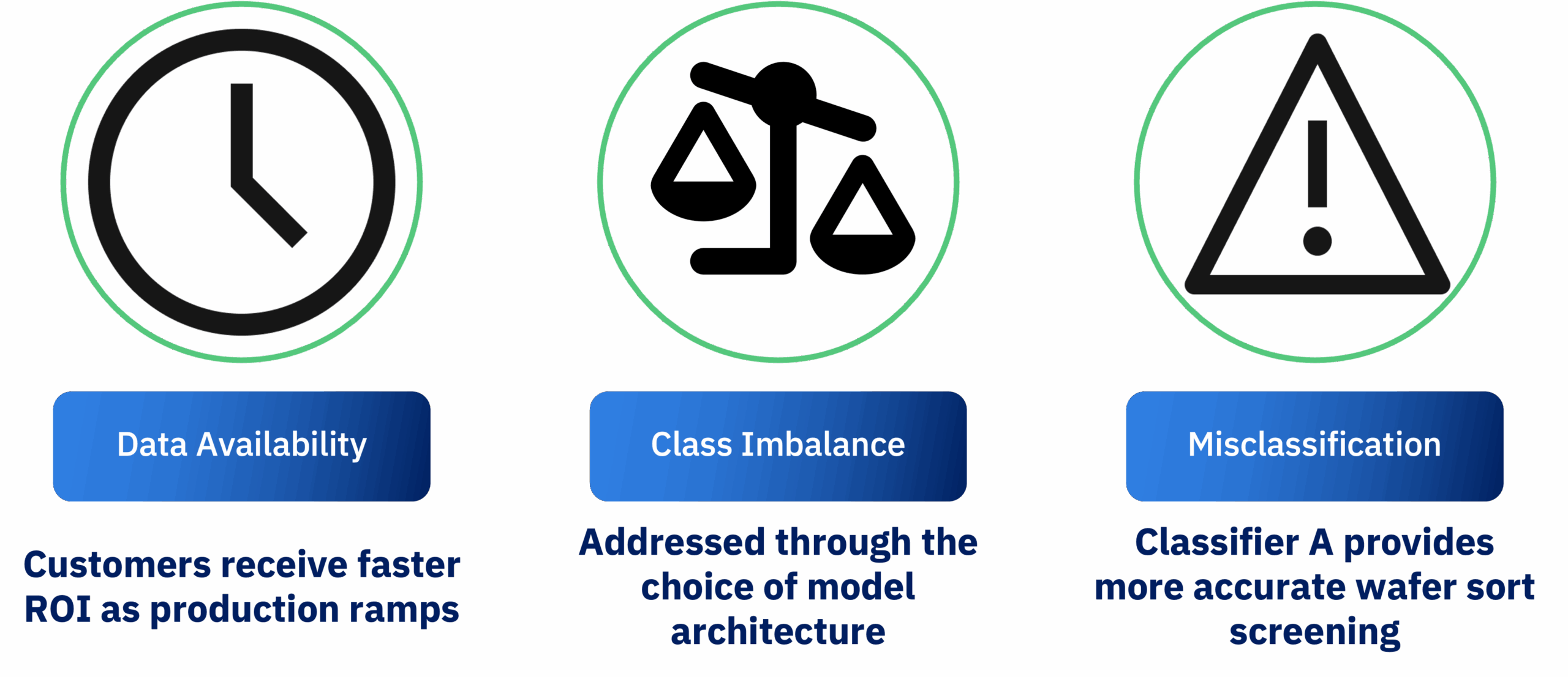 Improved wafer sort to final test prediction accuracy directly reduces downstream waste by preventing defective dies from proceeding through expensive manufacturing steps. The specialized classifier offers substantial value by expertly identifying challenging samples, thereby reducing both Type I and Type II error rates..